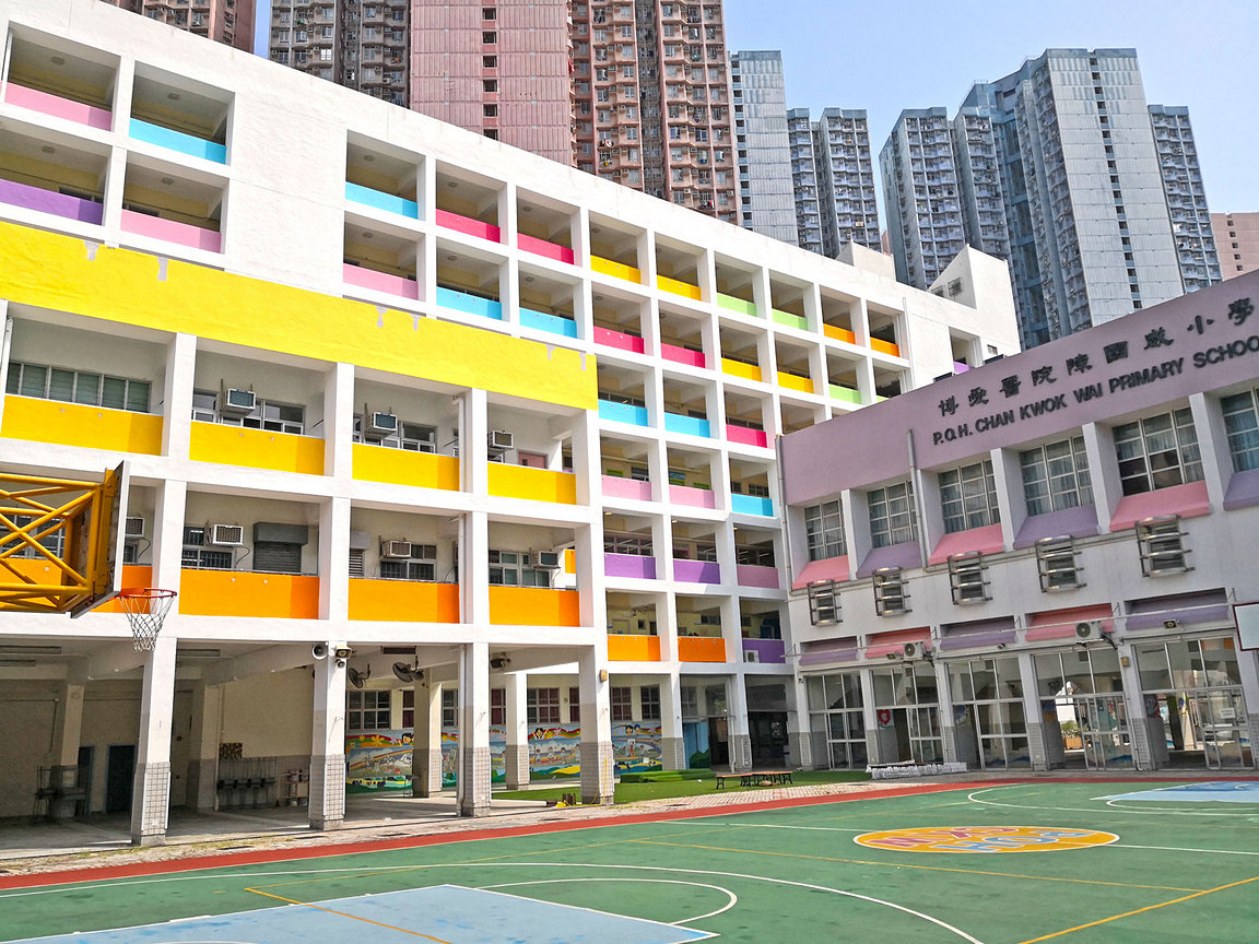 高爾夫球練習場在學界相當罕見,更何況是出現於屋邨學校!位於將軍澳的博愛醫院陳國威小學,近年鋪設了人造草地及建設相關設施,讓學生於體育課能學習高爾夫球基本技巧,下課後可接受高球訓練。5 年前,韋淑貞校長上任後致力改革英語課程及硬件配套,為學生創造多元學習經歷,包括引入高爾夫球體驗班,學生有機會到滘西洲高爾夫球場進行實地訓練。